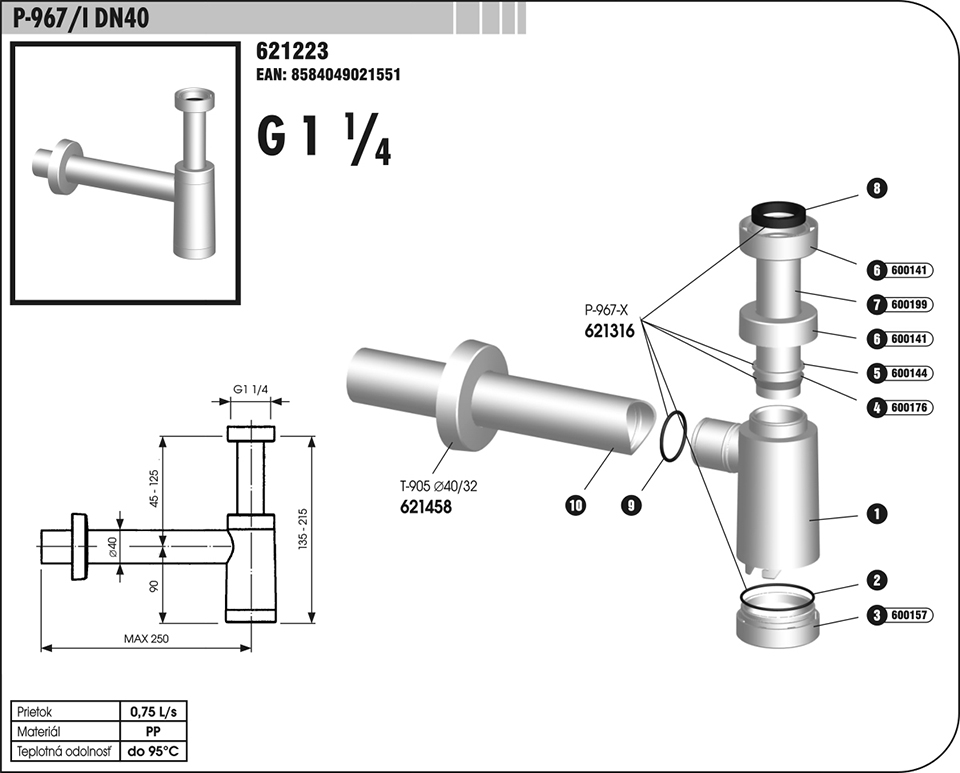 polsifón umyvadlový 967/I 621223